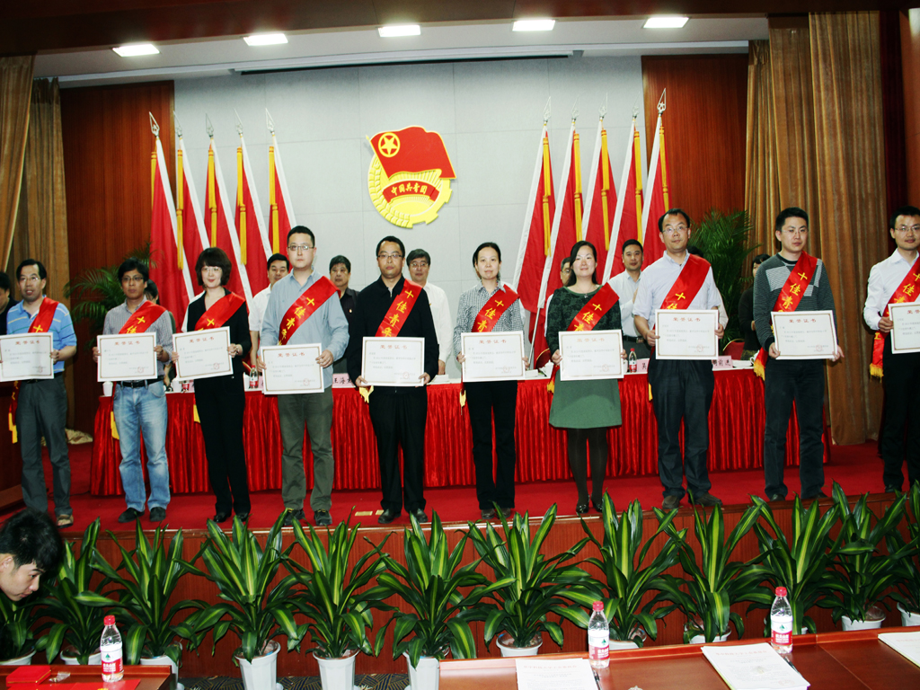 2013年度"十佳青年教工"当选者王军明、王健、付松年、刘茜、陈蓉、周建新、岳军、赵茵、廖小飞、谭波等A漫一批青年中的先进集体和优秀个人受到隆重表彰。校党委书记路钢、党委副书记欧阳康、工会主席王海生及相关职能部门负责人出席大会。欧阳康副书记讲话。