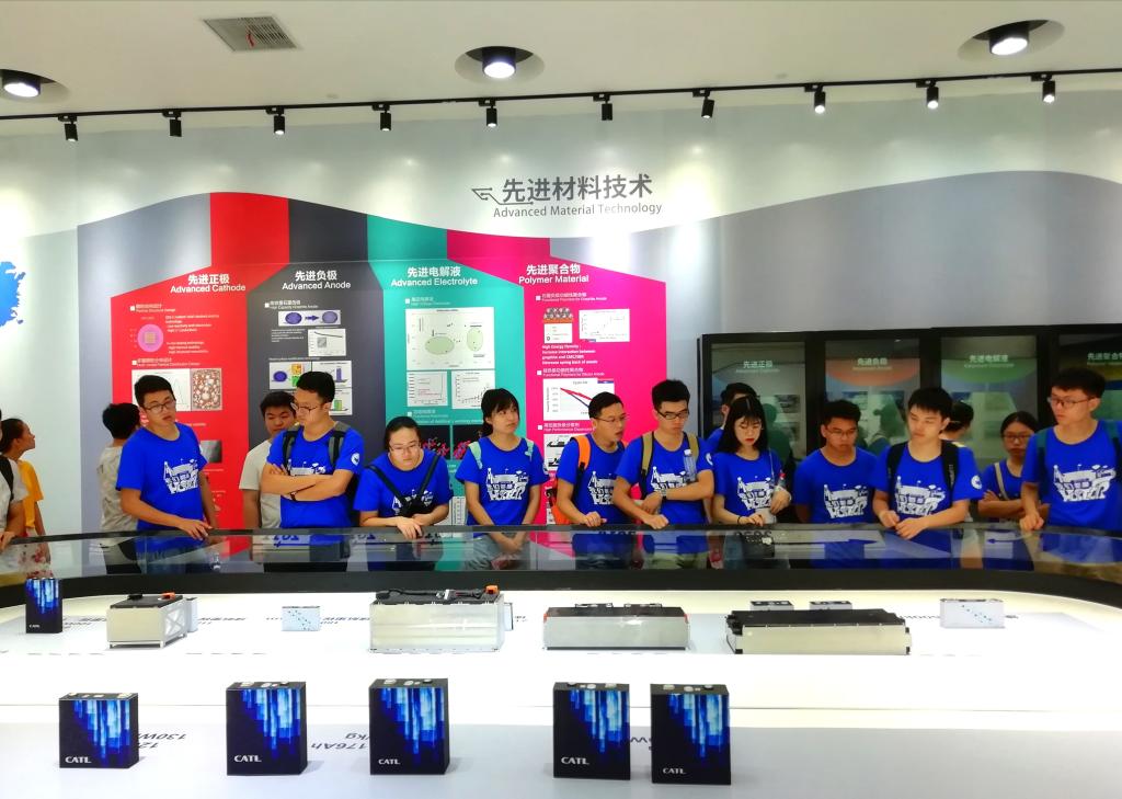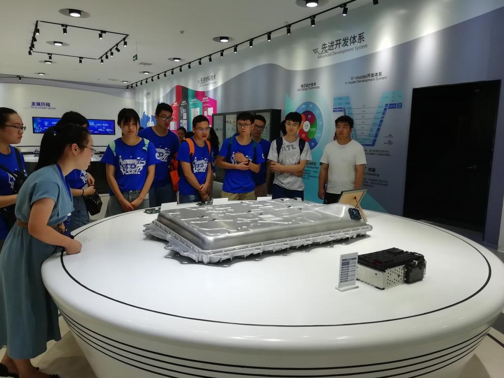8月11日至8月14日,实践队前往福建省宁德市的宁德时代新能源科技股份有限公司进行企业实践活动,CATL公司HR陈莉女士带领实践队员参观了企业展览馆,通过对A漫、愿景、价值观和发展历史以及产品类别、产品开发方向的介绍,让队员们对CATL公司形成全面的了解。通过参观,队员们了解到CATL不仅致力于汽车动力电池的研发,并且将发展目标长远地放于储能系统的应用上。