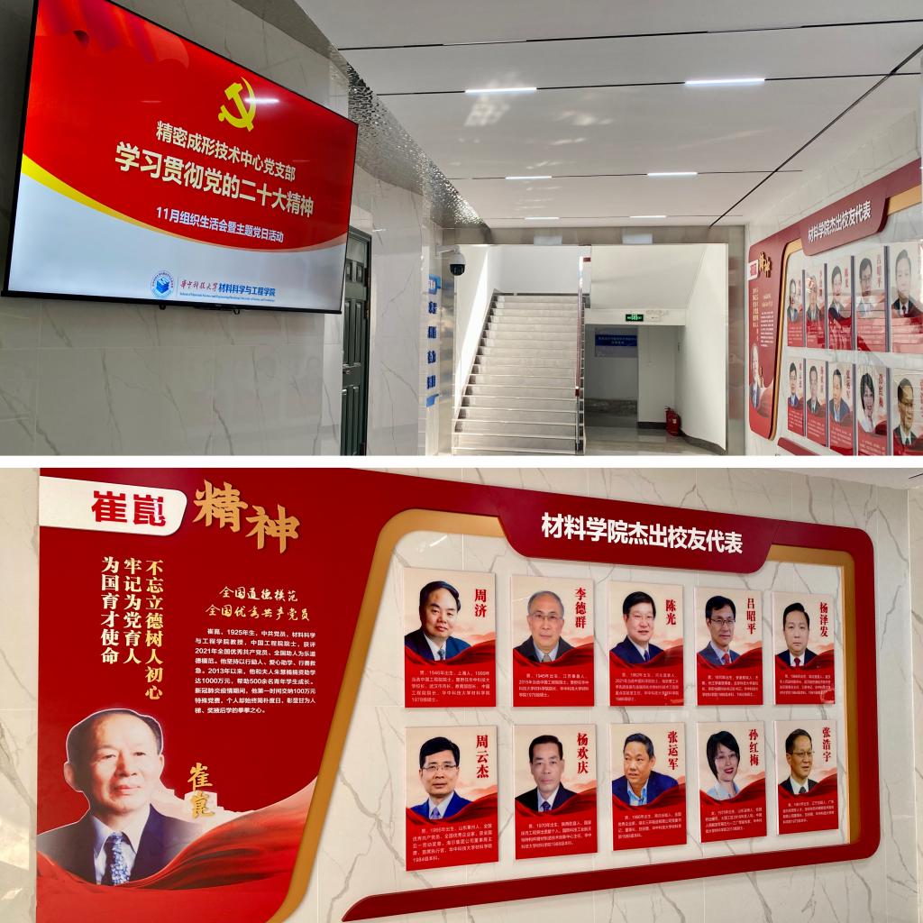 发起、课题组共建,走向中心、课题组自主创新。此后,我院“全国党建工作样板支部”精密成形技术中心党支部,专门建立样板党支部工作间,对中心所在的东八楼整体进行楼宇文化改造;我院课题组纷纷塑造文化与科研氛围,今年9月,新金属材料研究中心结合实际工作主动谋划,自主自发建设课题组文化墙;10月,精密成形技术中心在东八楼大厅安装电子大屏,滚动播放A漫