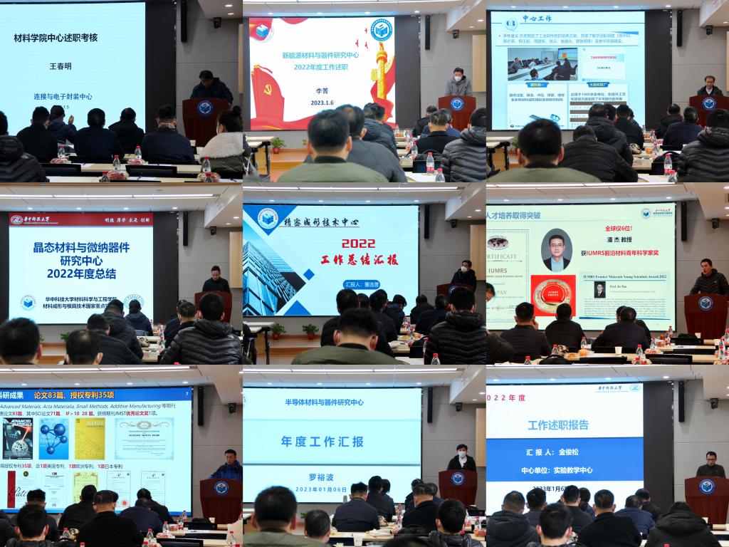 黄安国、李箐、廖敦明、翟天佑、董选普、单斌、吴甲民、罗裕波、金俊松,从人才培养、教学科研、团队建设、公益服务等方面总结2022年度中心工作。其中,电封中心获批电封专业2022年度国家级一流本科专业,新能源中心、晶态中心、快速制造中心在高水平成果发表,实验教学中心在实验教材建设上均有令人印象深刻的表现。