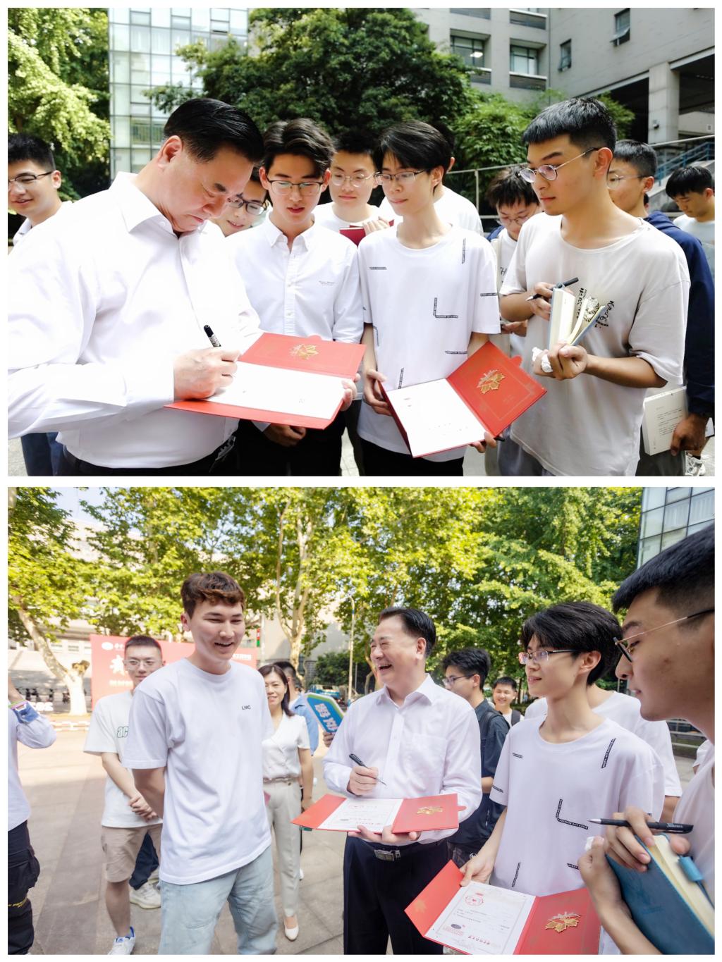 2023届本硕博499名同学,在先进制造大楼西楼广场拍摄毕业照,校党委书记李元元院士带着对毕业生的寄语和祝福赶到现场与毕业生合影留念。