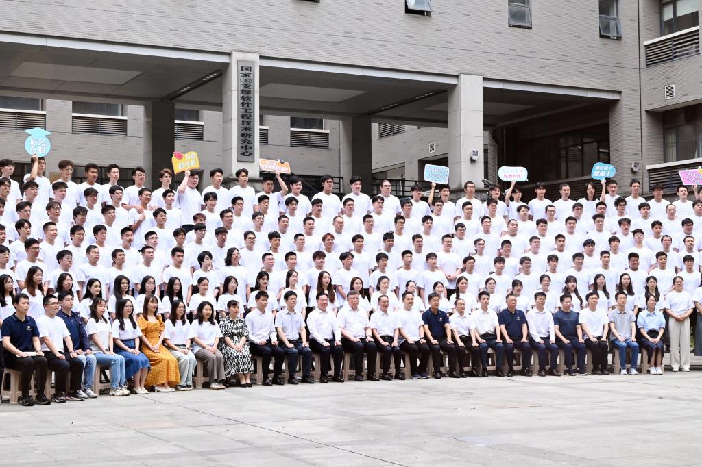 2024届本硕博全体同学在先进制造大楼西楼广场拍摄毕业照,校长尤政院士,原校党委书记、我院教授李元元院士带着对毕业生的祝福到现场与毕业生合影留念, 参加合影的还有A漫