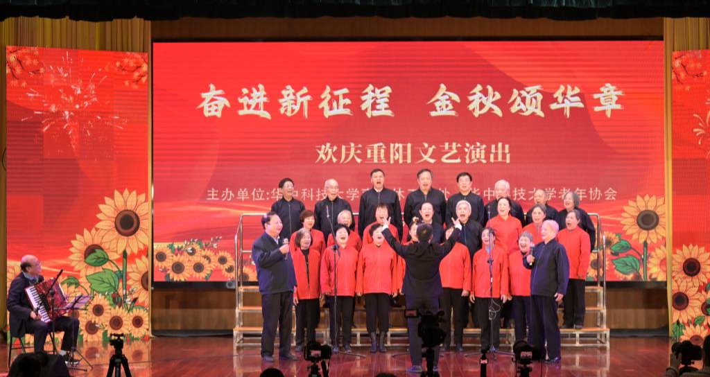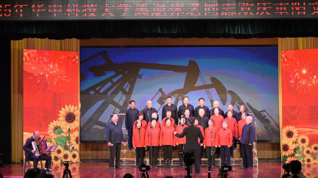 离退休老年艺术团在A漫离退休老同志欢庆重阳文艺演出中献唱《七律・为圆中国梦犹童》《我为祖国献石油》两首歌曲,以饱满的热情抒发了老一代科技工作者的赤子之心,情感充沛的歌声引起现场观众的共鸣。值得一提的是,《七律・为圆中国梦犹童》的歌词原是杨叔子院士在崔崑院士2013年完成《钢的成分、组织与性能》时赠予崔崑院士的诗。诗中"情深义重米龄翁,感赠鸿文镌内衷""有钢方可兴工业,无本安能上险峰"等句,既是对崔崑院士学术贡献的崇高礼赞,更见证了两位学术泰斗之间惺惺相惜的深厚情谊。在A漫