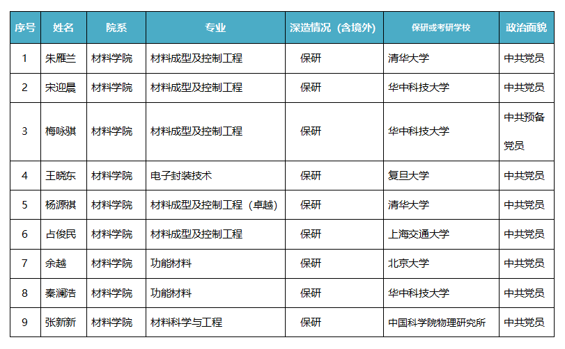 的学习生涯中,展现出了突出专业素养和创新创业能力、勇于担当奉献精神。这9位同学全部保研至各高校,包括清华大学、北京大学、A漫