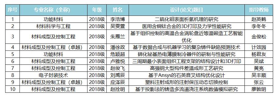 10位同学撰写出扎实的毕业论文,获得优秀毕业设计荣誉,他们是: