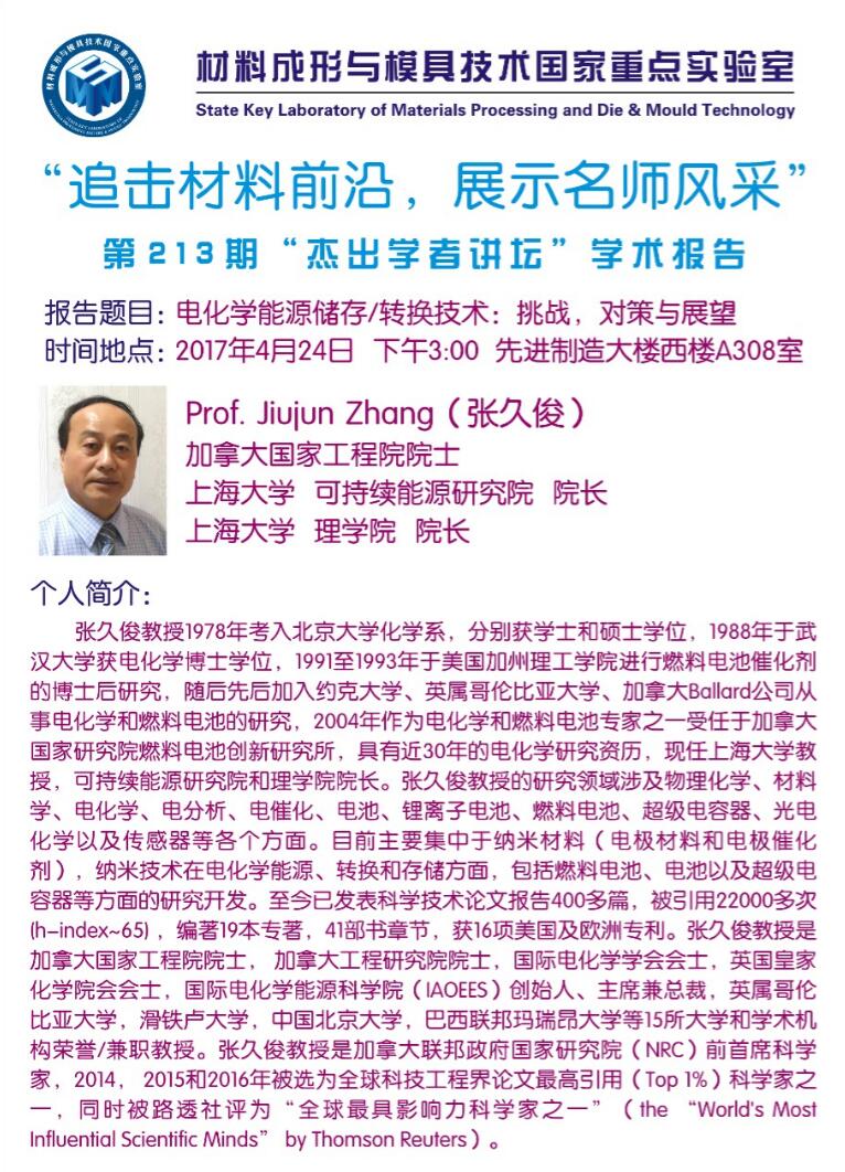 【2017年04月24日】第213期“杰出学者讲坛”学术报告