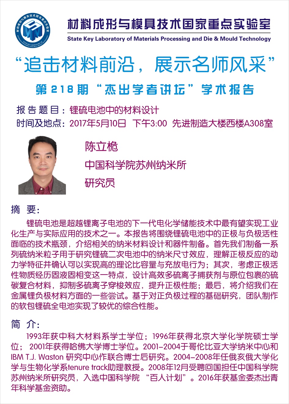 【2017年05月10日】第218期“杰出学者讲坛”学术报告