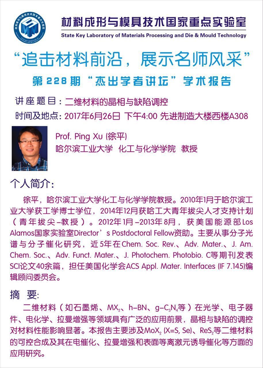 【2017年06月26日】第228期“杰出学者讲坛”学术报告