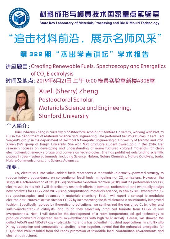 第322期杰出学者讲坛——Stanford University Postdoctoral Scholar Xueli (Sherry) Zheng