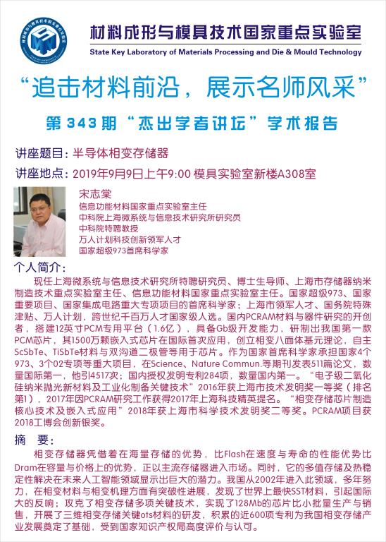 第343期杰出学者讲坛——信息功能材料国家重点实验室主任宋志棠