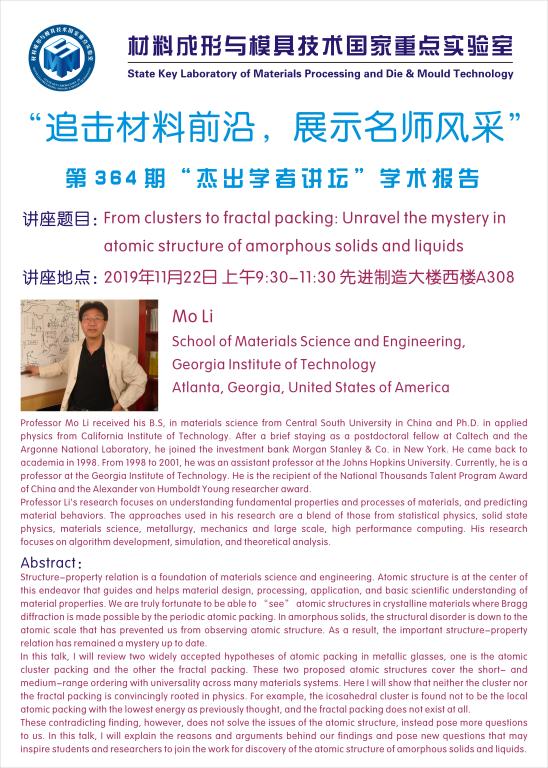 第364期杰出学者讲坛——professor Mo Li from Georgia Institute of Technology