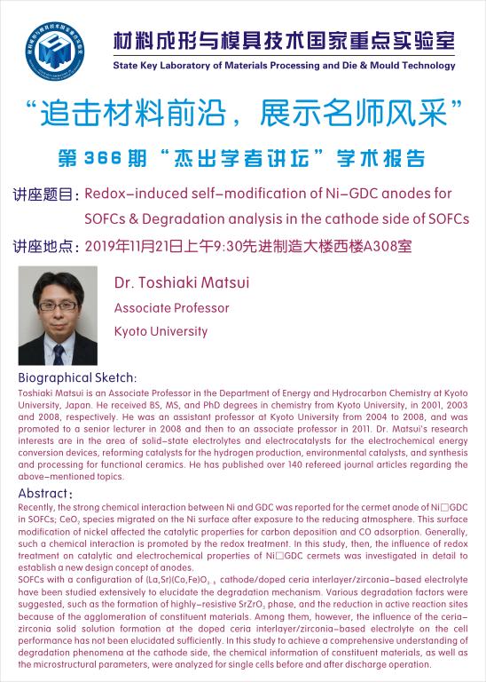 第366期杰出学者讲坛——Dr. Toshiaki Matsui from Kyoto University