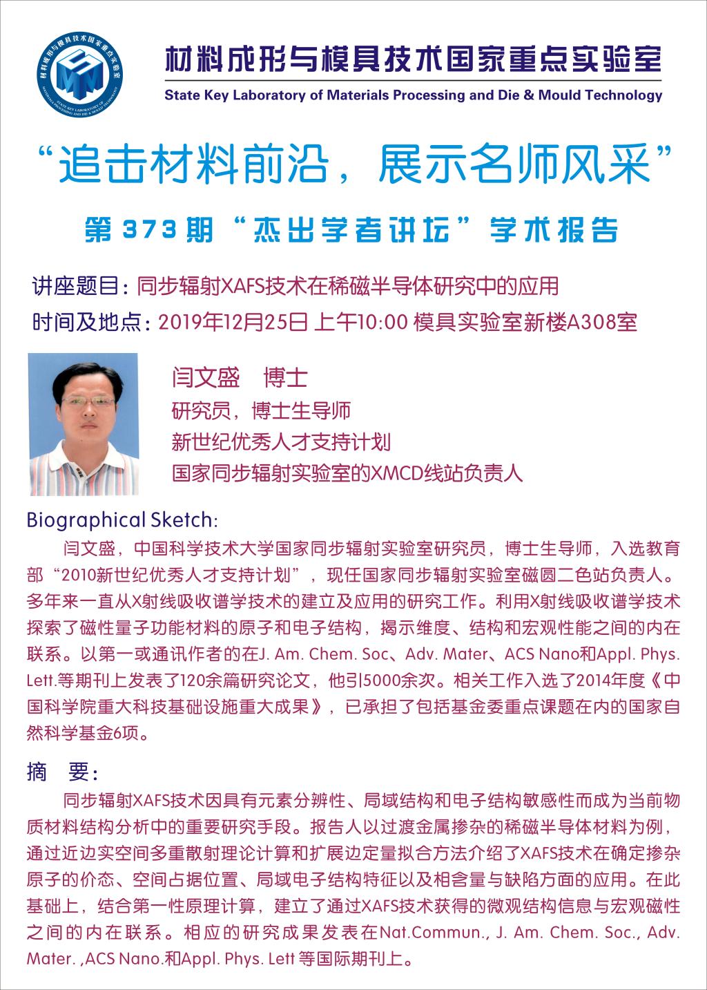 第373期杰出学者讲坛——中国科学技术大学研究员闫文盛