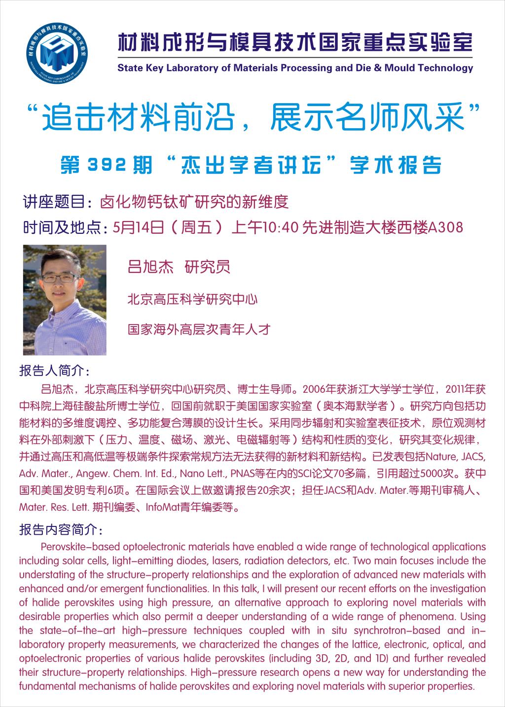 第392期杰出学者讲坛——北京高压科学研究中心研究员吕旭杰