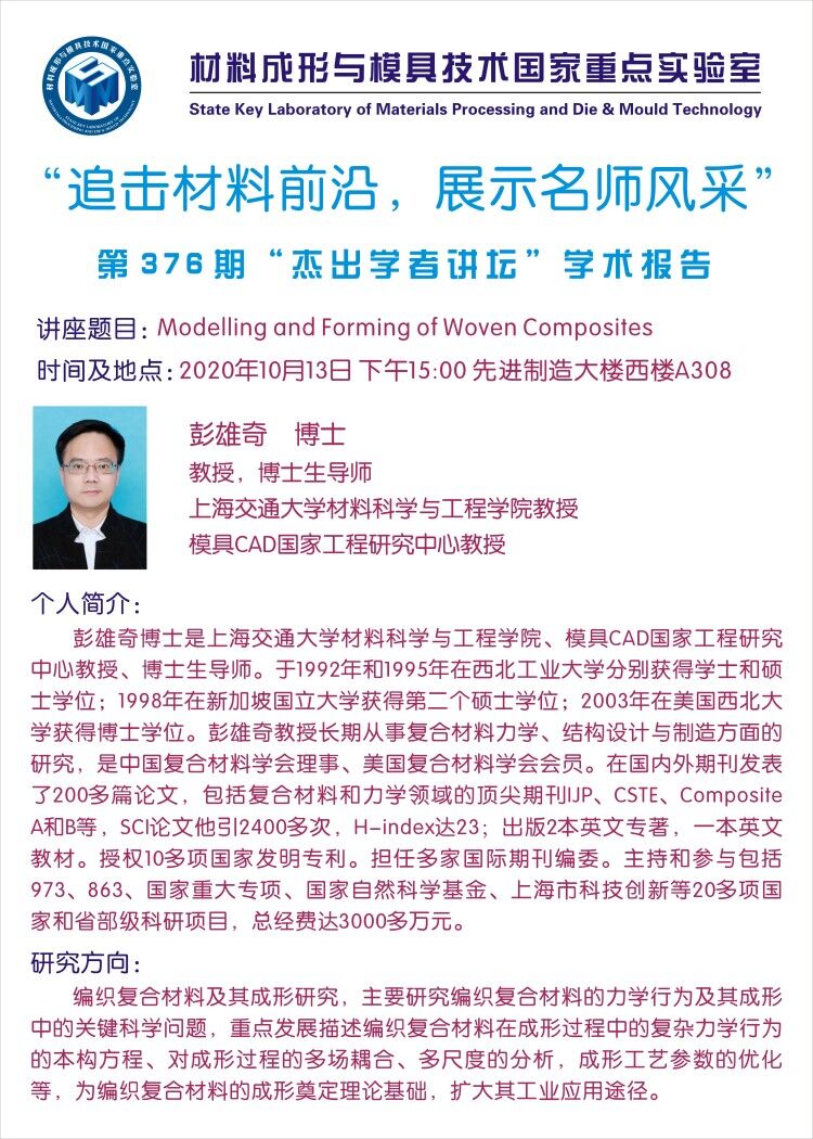 第376期杰出学者讲坛——上海交通大学教授彭雄奇