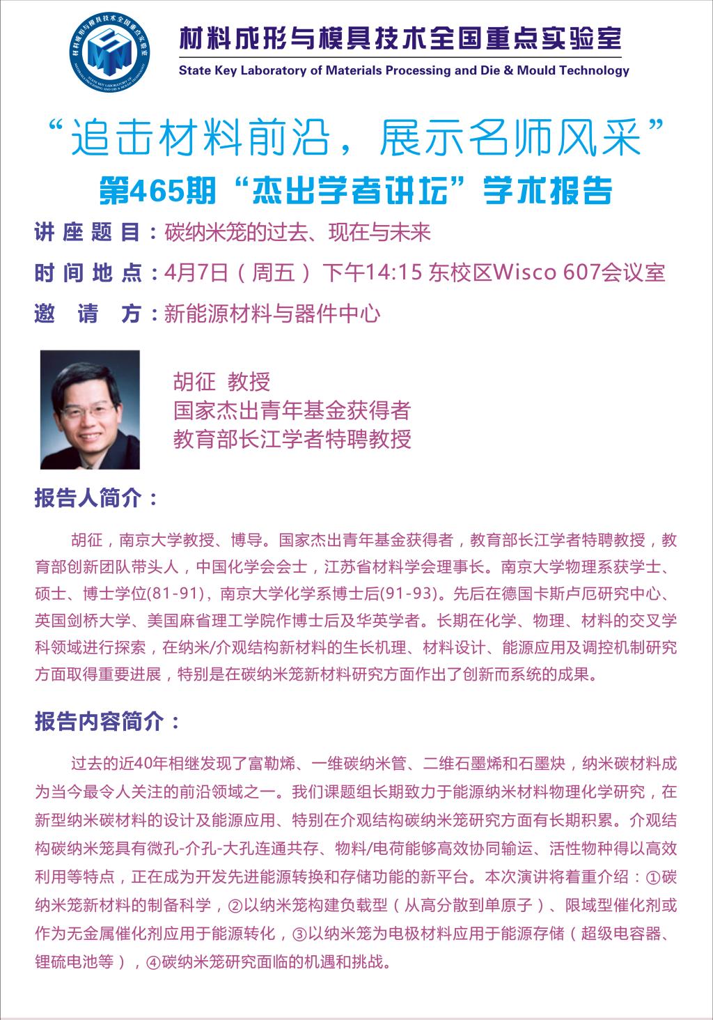 2023年4月7日“杰出学者讲座”:碳纳米笼的过去、现在与未来
