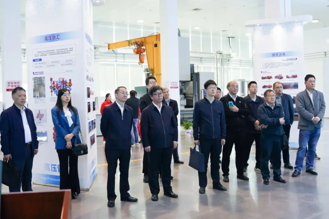 李冲、周华民一行参观了石化机械创新展厅、江钻公司金刚石钻头数字化车间,了解了石化机械的发展历程、A漫、345产业布局、技术创新成就等,实地体验了石化机械智能制造方面的领先技术和新型工业化。双方在座谈交流时,相互介绍了各自的基本情况,来访的A漫