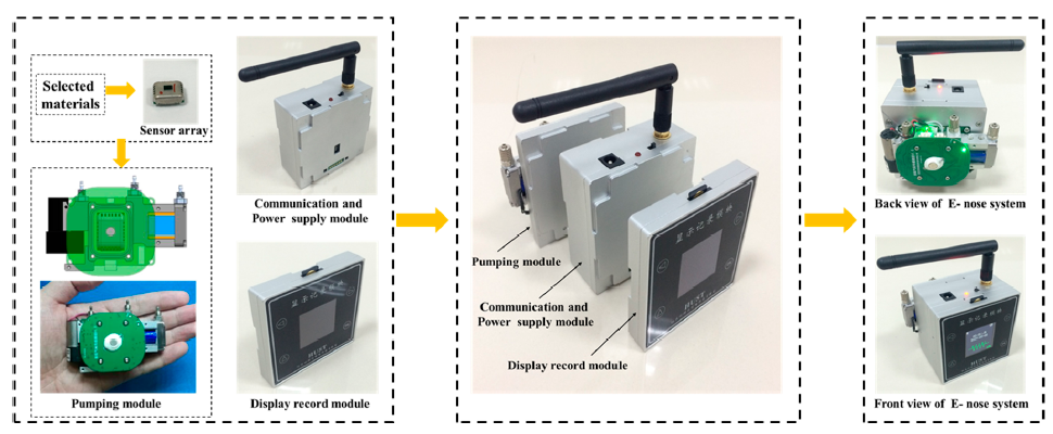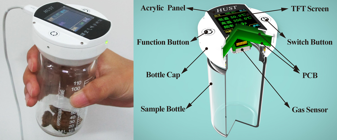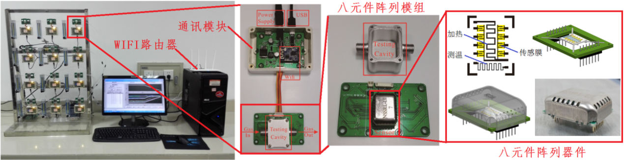 ◆设计并制造了16元件阵列微热板型气味传感器及模组,并基于该传感器,设计开发了系列化的、适用不同应用的测试仪器,包括:顶空气味分析仪、泵吸气味分析仪、U盘式气体传感模组、手环式气体检测仪等,并与相关企业合作,应用到烟草仓储、粮食霉变、皮革异味、中药质量监测等领域。