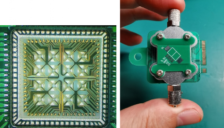 图5 微热板阵列气味传感器芯片(左)及模组(右)