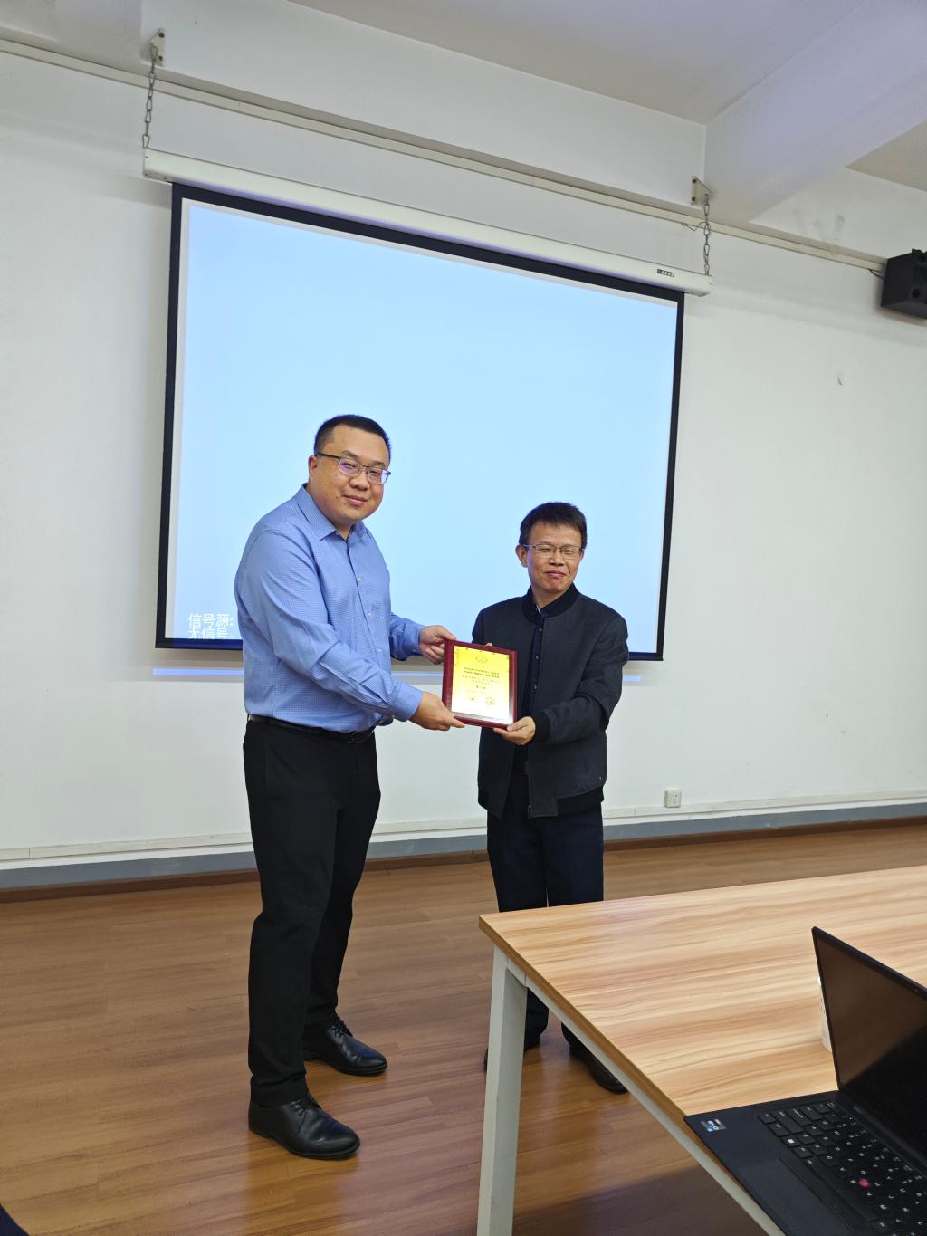 首先,杨君友教授对魏磊副教授的到来表示热烈欢迎,并隆重介绍了魏磊副教授的基本经历与学术贡献,同时为其授牌。