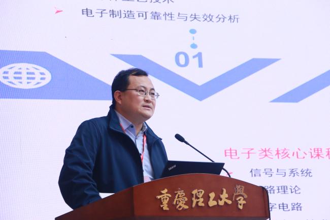 重庆理工大学副校长何建国出席并致辞,他对与会嘉宾表示了热烈的欢迎和衷心的感谢,并介绍了重庆理工大学近年来的发展成就和特色优势。他讲到,电子封装是芯片到整机的桥梁,是突破芯片产业"卡脖子"的关键一环,希望通过本次研讨会深入探讨电子封装技术本科教育的关键问题,完善和丰富人才培养体系,提高本科人才培养质量,增进与会各方的交流和合作,为推动我国电子封装技术领域的发展和创新做出贡献。