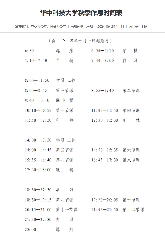 学校自2024年10月1日起施行秋季作息时间表,具体如下: