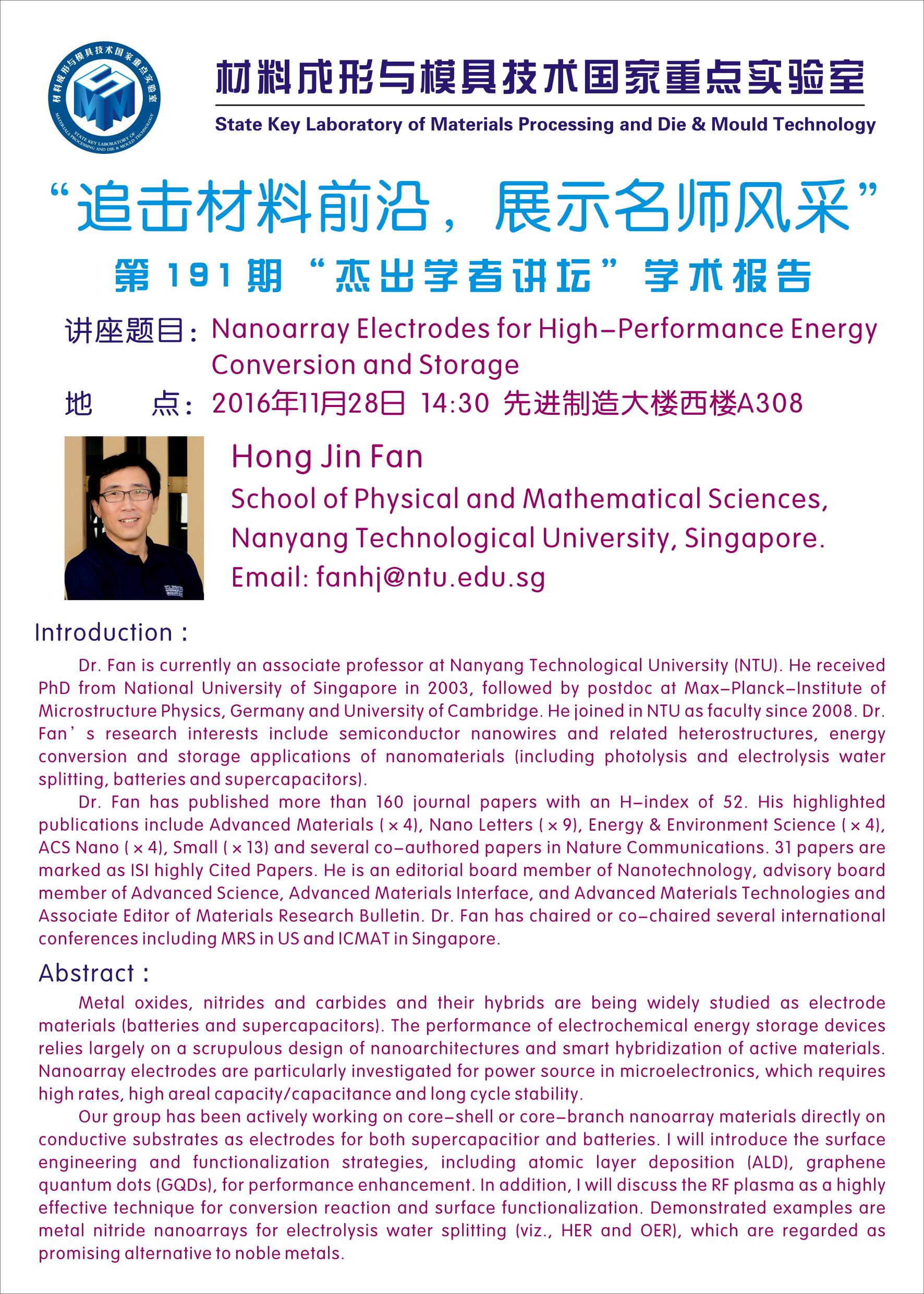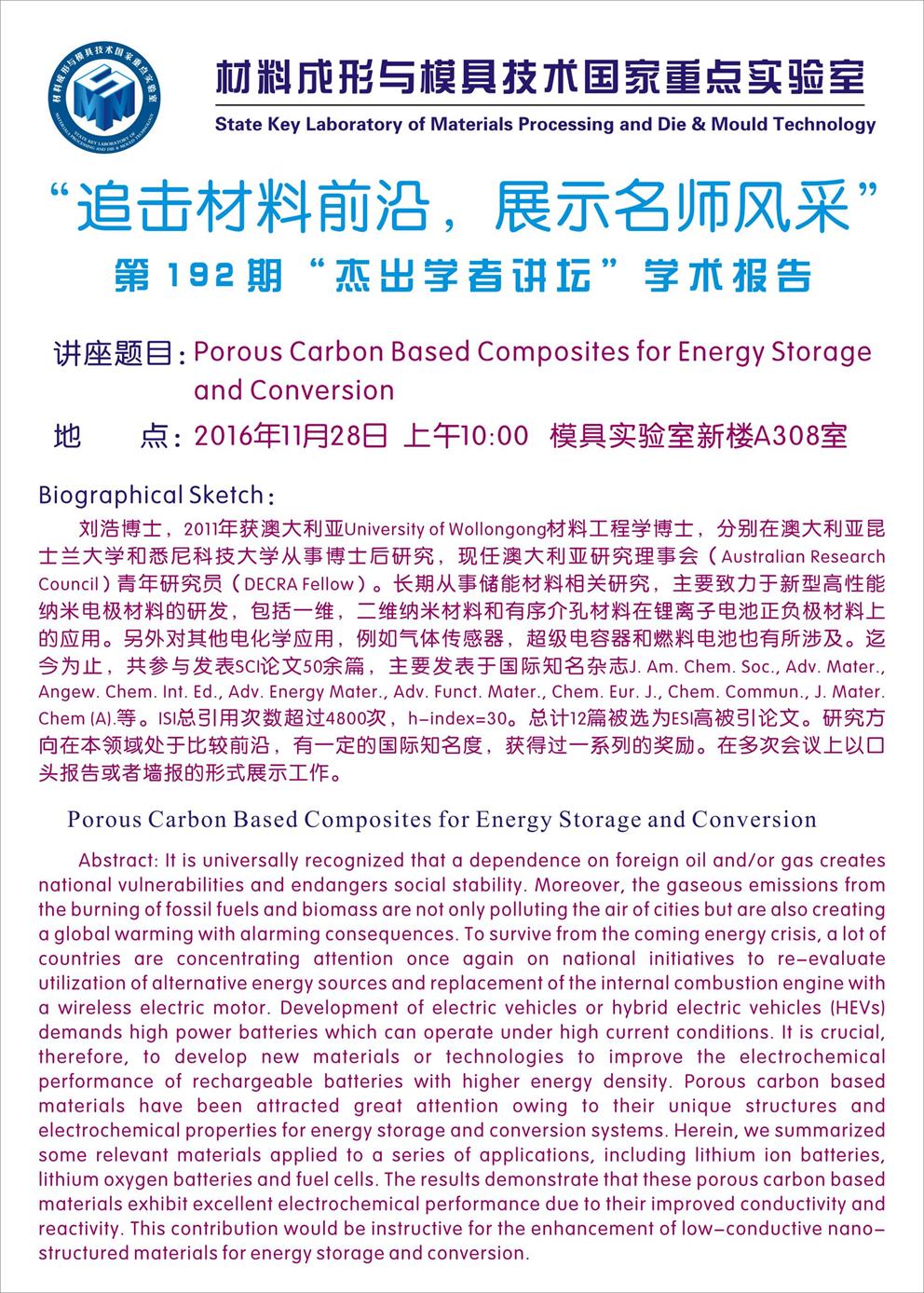 【2016年11月28日】第192期"杰出学者讲坛”学术报告