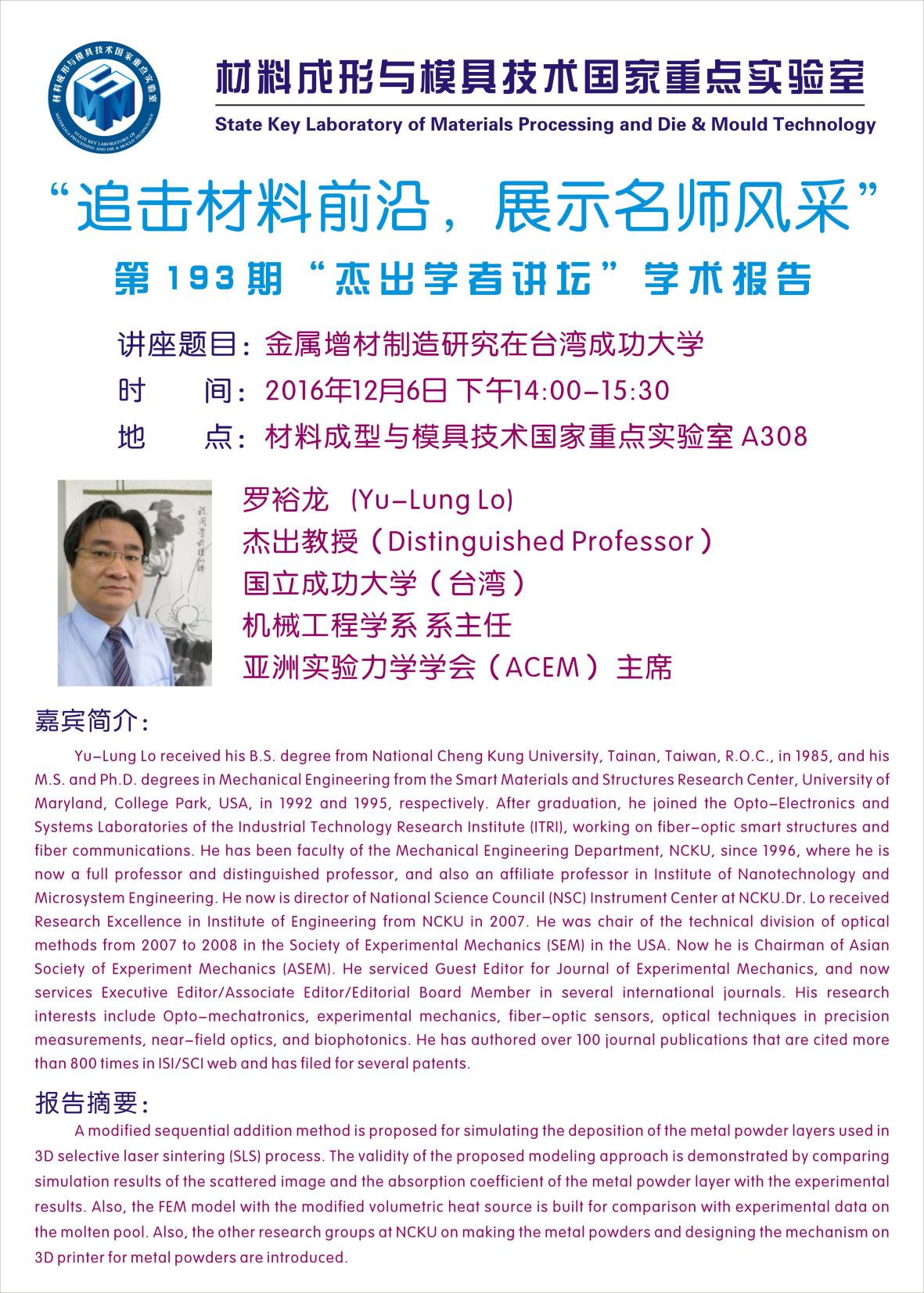 【2016年12月6日】第193期“杰出学者讲坛”学术报告