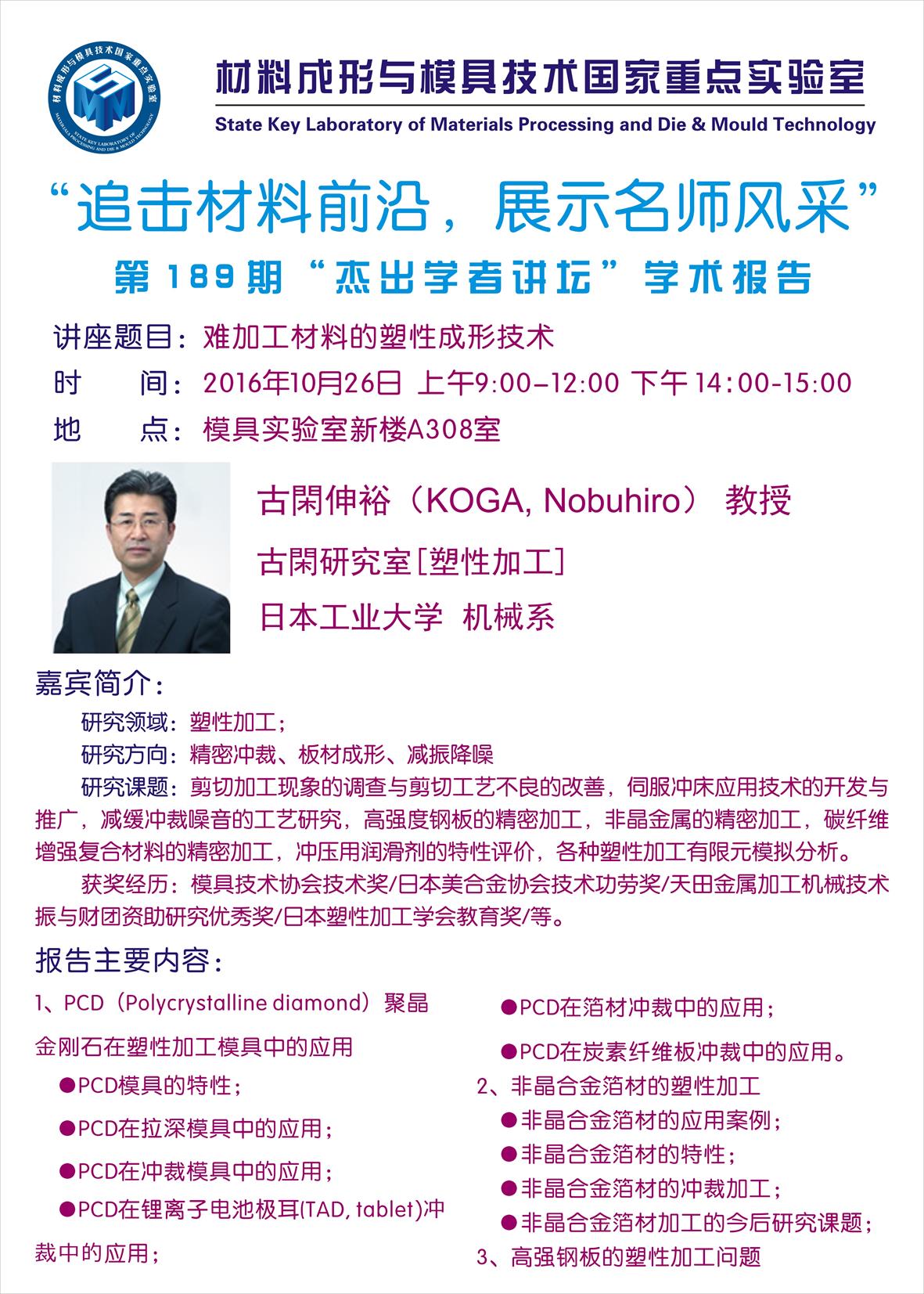 【2016年10月26日】第189期“杰出学者讲坛”学术报…