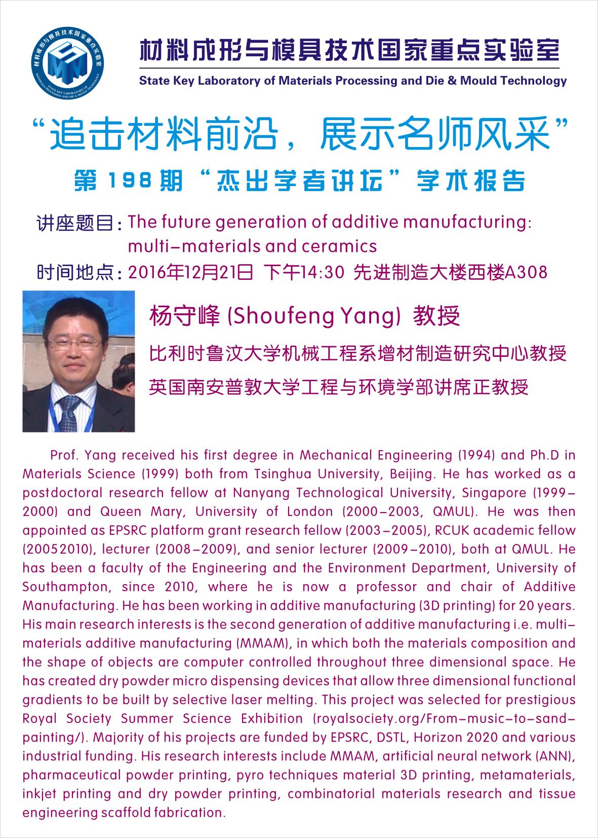 【2016年12月21日】第198期“杰出学者讲坛”学术报…