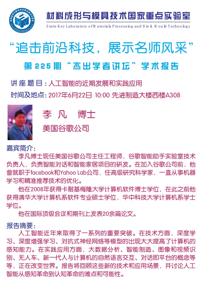 【2017年06月22日】第225期“杰出学者讲坛”学术报…
