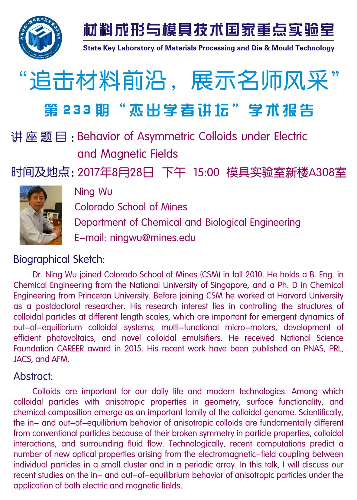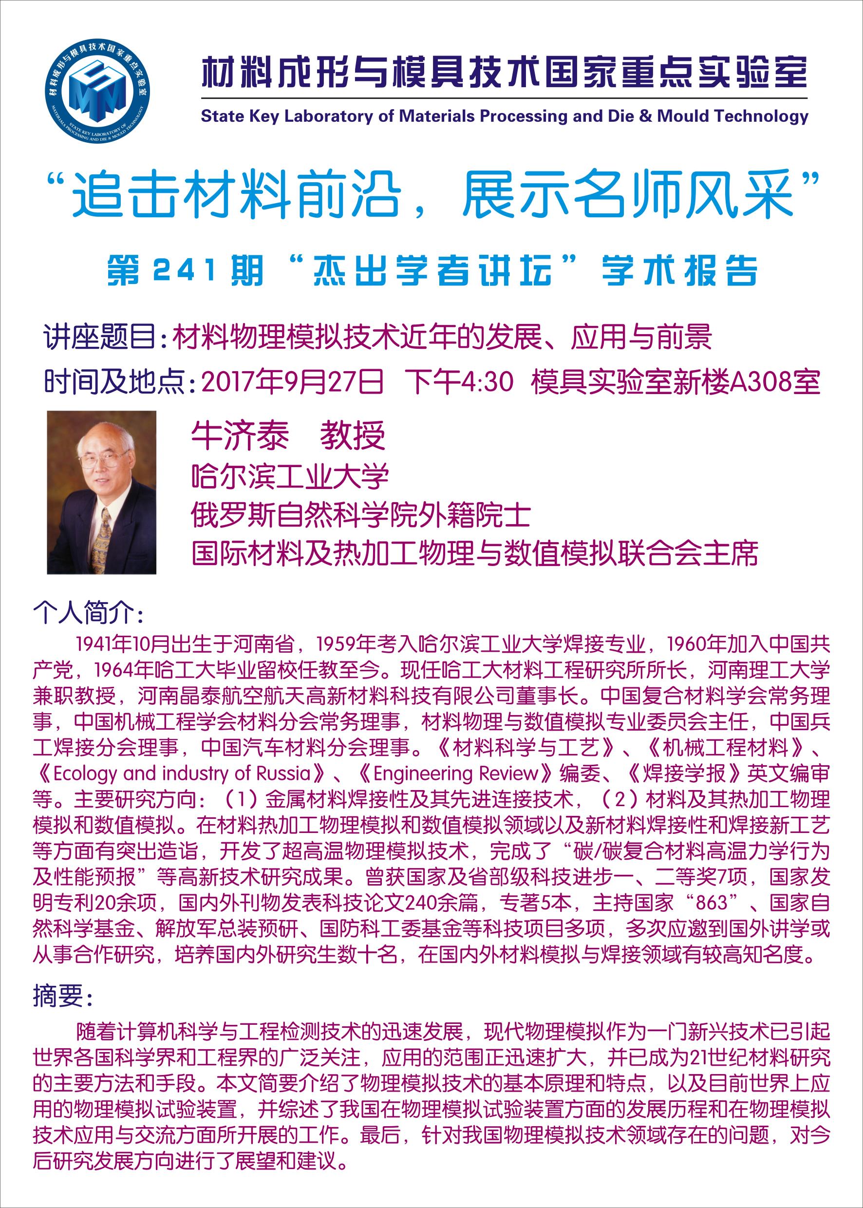 【2017年09月06日】第235期“杰出学者讲坛”学术报告