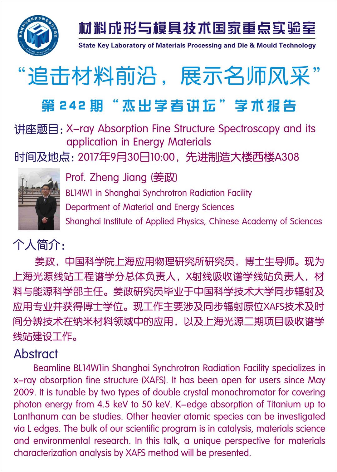【2017年10月30日】第244期“杰出学者讲坛”学术报告