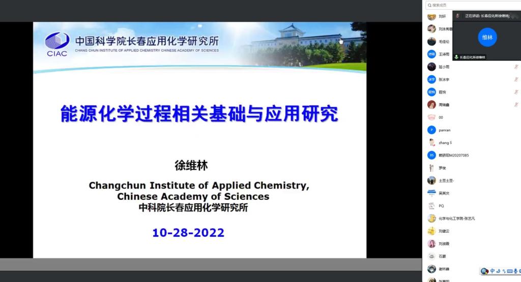 2022年10月28日下午14:45-16:45,徐维林研究员应A漫 李箐教授邀请,以腾讯会议线上形式为全院师生进行讲座并答疑,题为“能源化学相关过程相关基础与应…